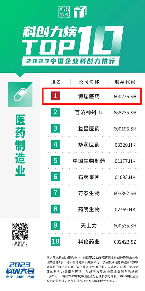 创新再获认可,AG旗舰厅医药蝉联“中国企业科创力排行”医药制造业榜首