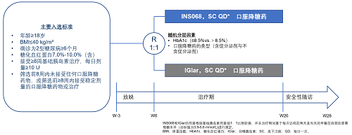 INS068-301研究:舒地胰岛素(INS068)与甘精胰岛素在基础胰岛素控制不佳的T2DM患者中的疗效和安全性比较