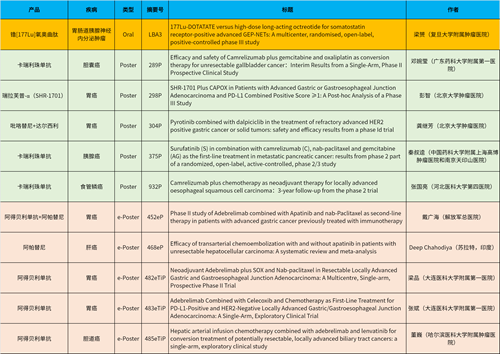 在消化系统肿瘤领域,AG旗舰厅产品相关研究共入选1项最新突破性摘要(LBA)、5项壁报和5项电子壁报,共11项研究。其中阿得贝利单抗入选4项研究、卡瑞利珠单抗入选3项研究。